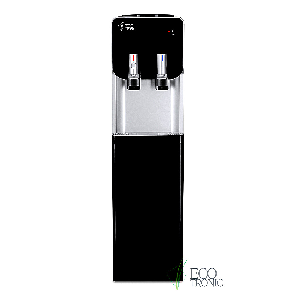 Корпус серебристого цвета, передняя панель черная с серебряной вставкой. Защита от детей на кране г\в. Индикация режимов нагрева, охлаждения и готовности воды. Краны «нажим кружкой».