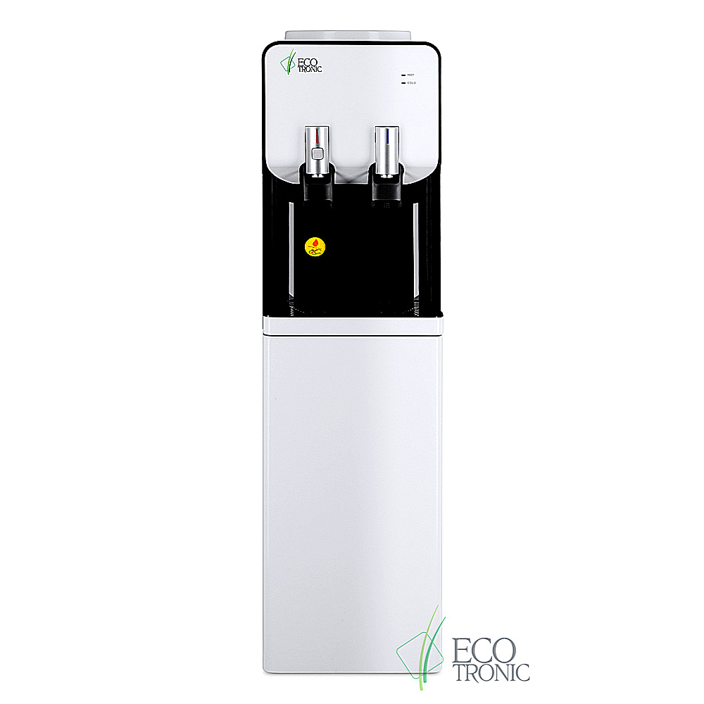Корпус белого цвета, на передней панели элегантная черная вставка. Защита от детей на кране г\в. Индикация режимов нагрева, охлаждения и готовности воды. Краны «нажим кружкой».