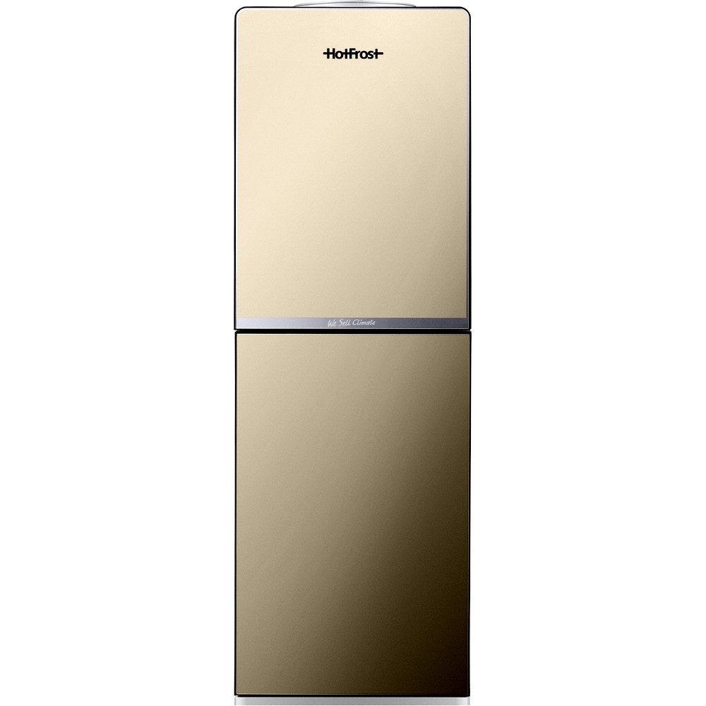 Кулер HotFrost V250CE Gold выполнен в трендовом цвете шампань-металлик, который сочетаем практически с любым интерьером. Дополнительные бонусы - это шкафчик для хранения посуды объемом 36 литров и дверца, скрывающая зону подачи воды и защищающая эту зону от попадания пыли.